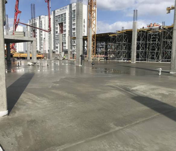 Тип объекта Бетонные полы, топпинг Период 2020 г. Торговый центр «GREEN», г.Гомель Устройство бетонных армированных полов. Площадь 5450м2.