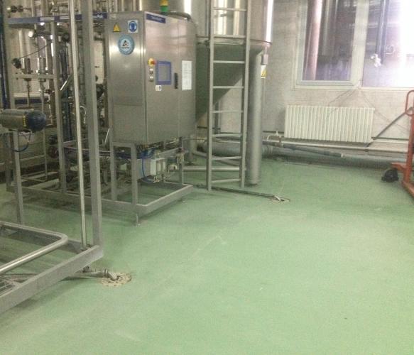 Тип объекта Полимерные полы Период 2013 год ОАО Туровский молочный комбинат Отзыв заказчика Здание ЛОС. Полимерное покрытие пола «Цемезит УР-35» толщ.5мм. Площадь 580м2