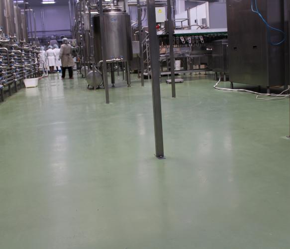 Сыродельный цех. Устройство армированного бетонного пола с полимерным покрытием СМТ Ризопур 5201-Purcem. Площадь 1180м2