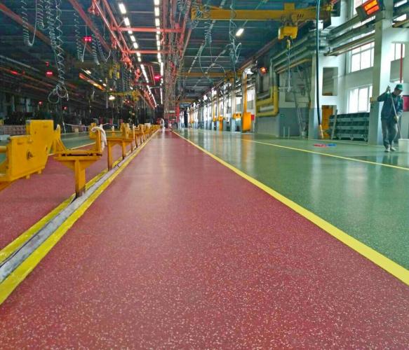 Тип объекта Полимерные полы Период 2018 год ОАО Минский тракторный завод Главный конвейер. Устройство полимерно-мозаичных полов «Цемезит УР-террацо» толщ.6мм. Площадь 2700м2